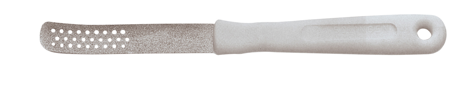 Терка бережно отшелушивает ороговевшие участки в труднодоступных областях, придавая коже ног ухоженность и аккуратность. Мелкая абразивность шлифовальной поверхности не травмирует кожу и не провоцирует появление мелких трещин.