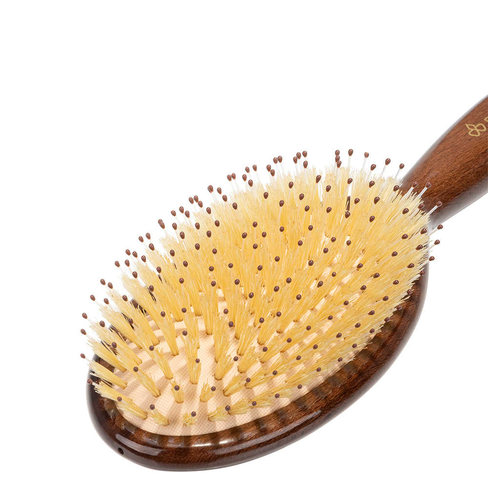 * Короткая щетина кабана помогает восстановить кутикулу и равномерно распределить натуральные масла от кожи головы до кончиков волос, напитывая волосы и придавая им гладкость и блеск.