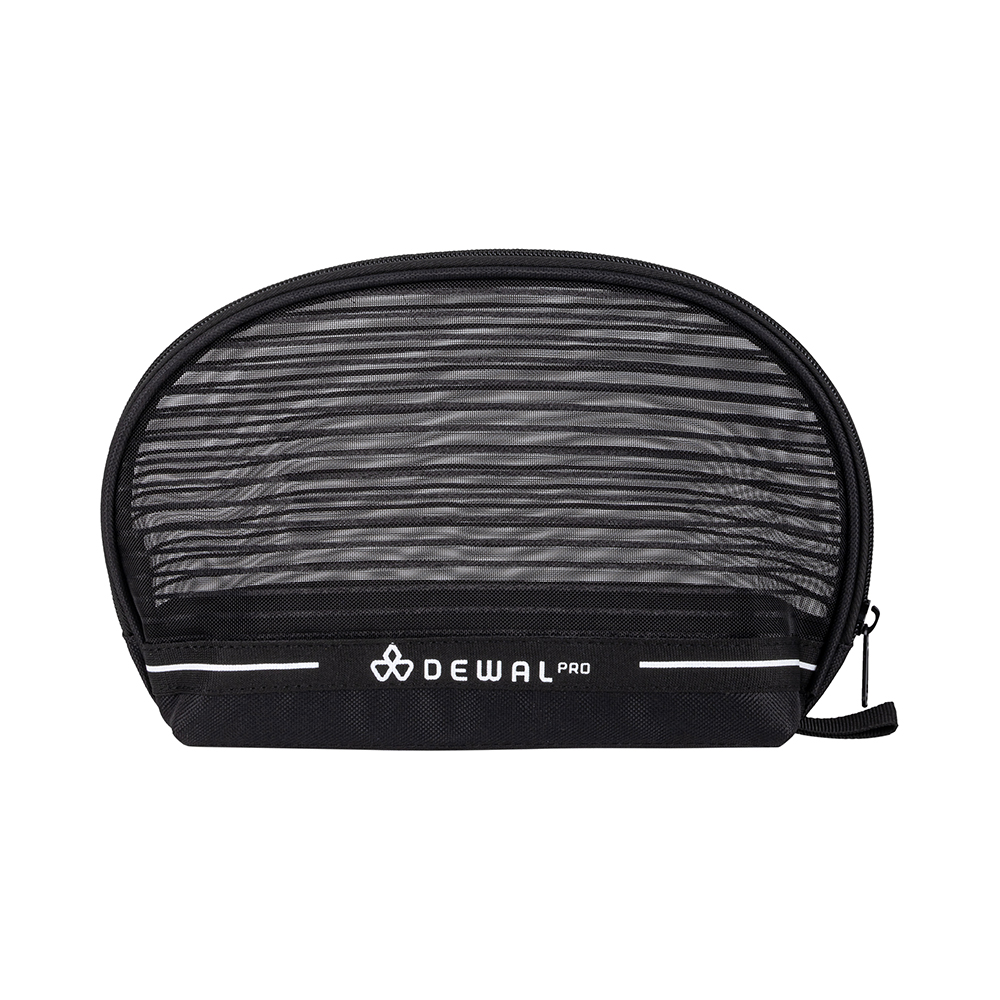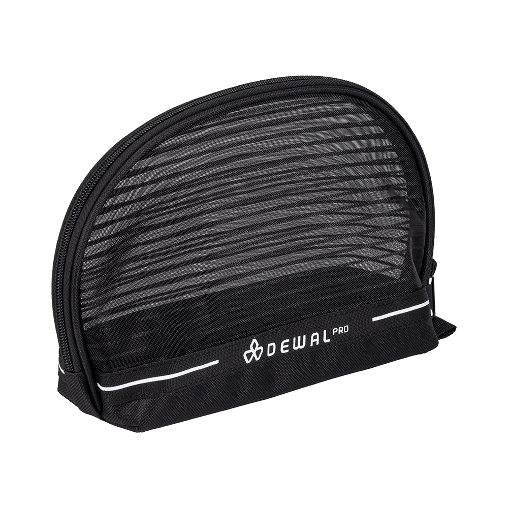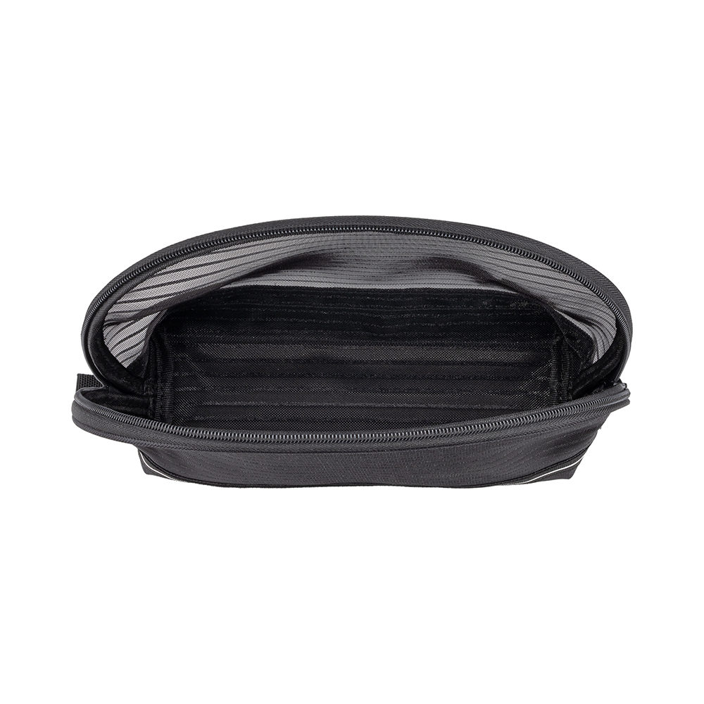 Косметичка изготовлена из прочного полиэстера. Легко очищается, устойчива к повреждениям. Верхняя часть косметички выполнена из сетчатого материала, чтобы все аксессуары легко просматривались. Классический черный цвет подойдет к любому образу и стилю.