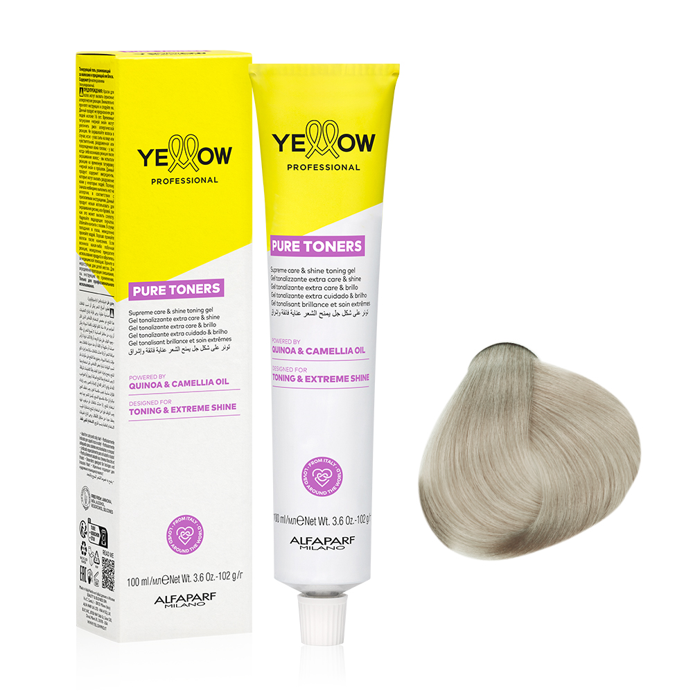 Тонирующий гелевый краситель YELLOW PURE TONERS - это полуперманентный безаммиачный краситель с эффектом интенсивного ухода.